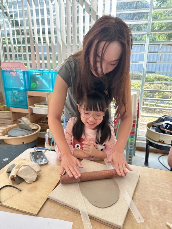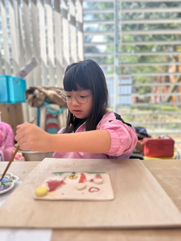到了陶藝創作時間,學生為自己和家人送上暖暖的心意。