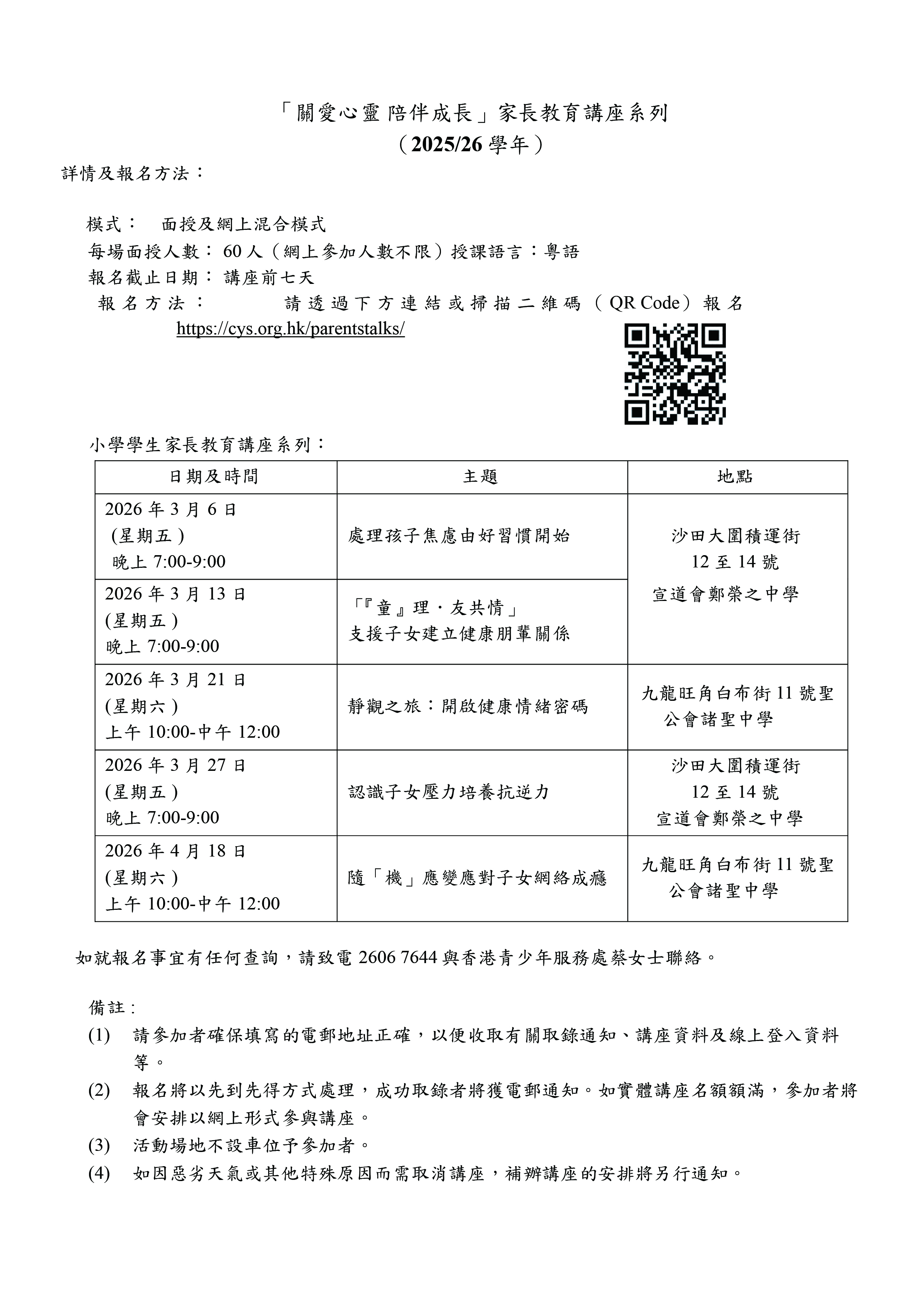 『關愛心靈 陪伴成長』家長教育講座系列 2026年3月1日