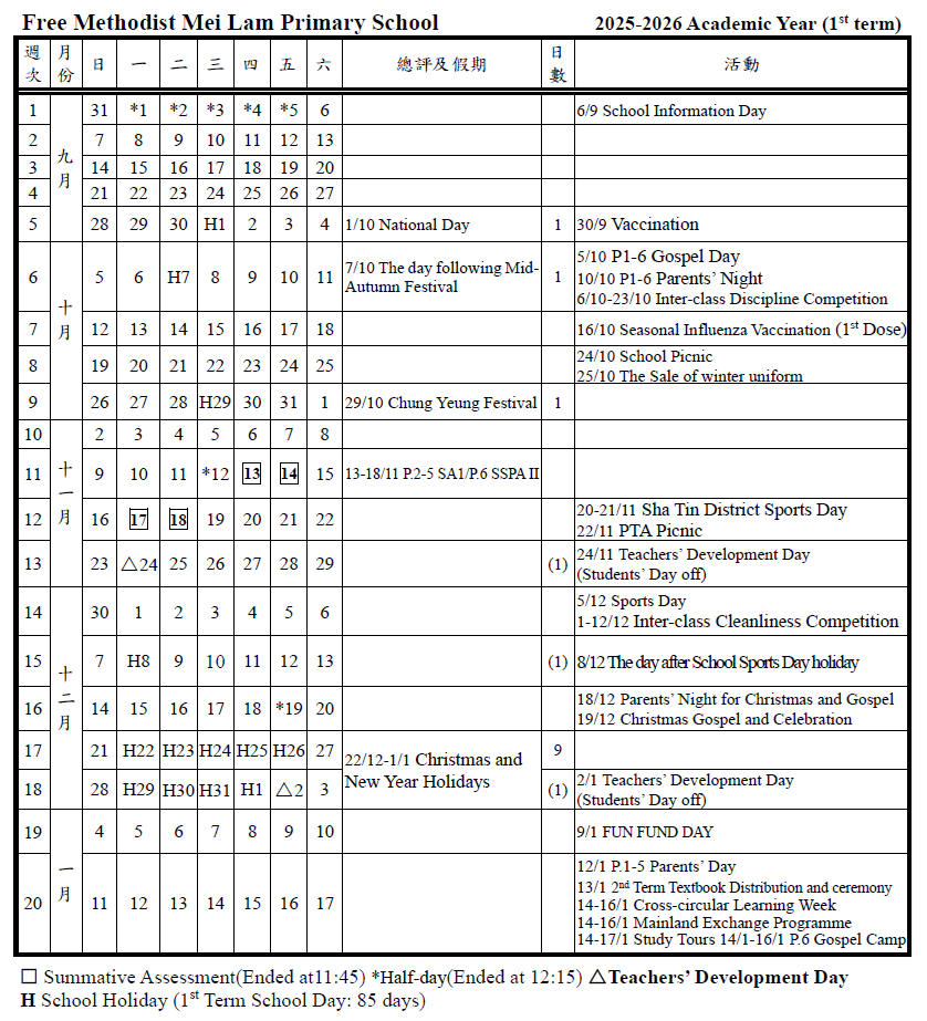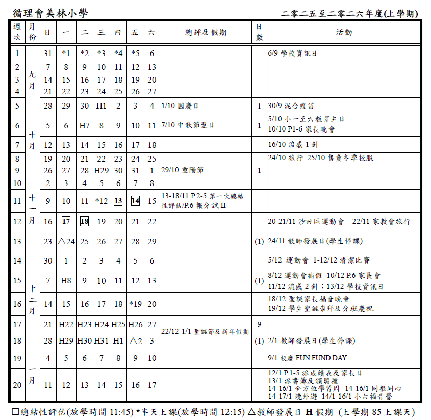 校曆表