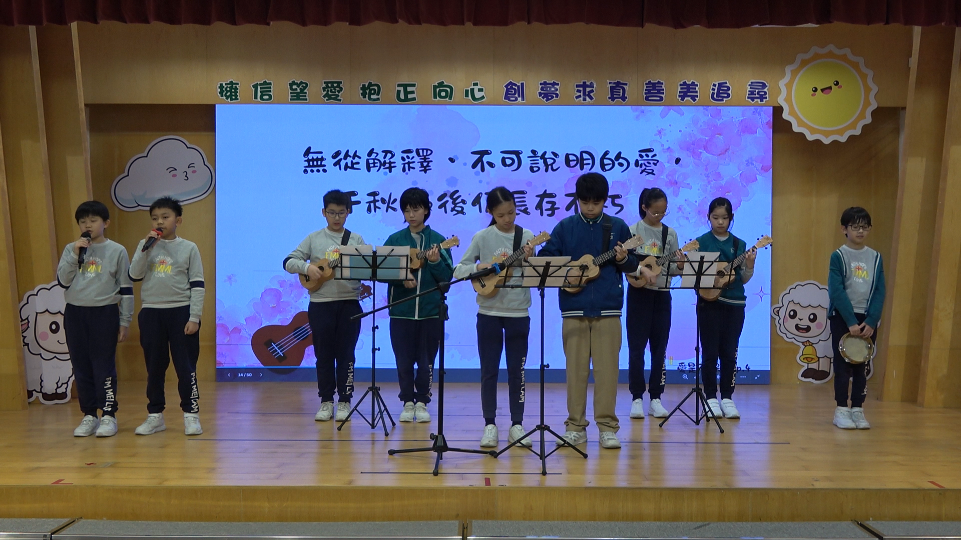 本校於小三至小六音樂課加入ukulele課程,讓學生學習掃弦和勾弦技巧,在堂上進行合奏。