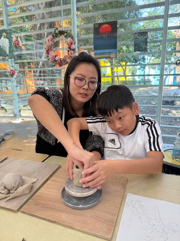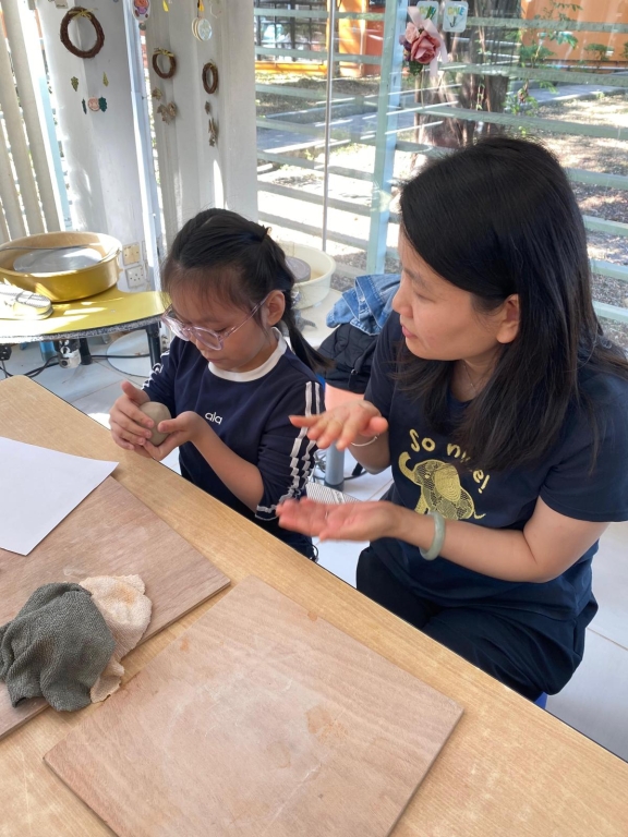 到了陶藝創作時間,學生為自己和家人送上暖暖的心意。