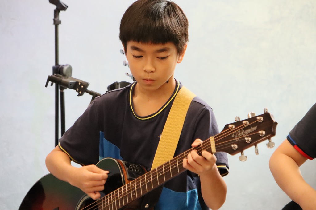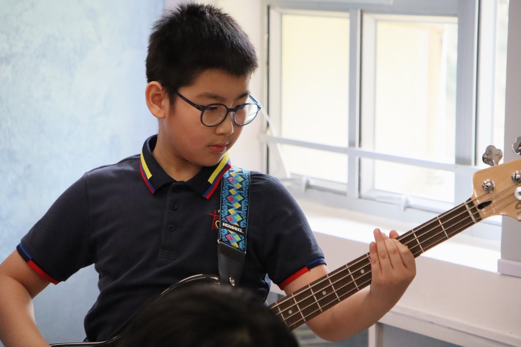 本校於小三至小六音樂課加入ukulele課程,讓學生學習掃弦和勾弦技巧,在堂上進行合奏。